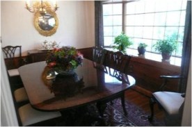 The large window was an old salvaged piece from a farmhouse in Arlington. I painted it added a wood ledge with brackets and hung over the sideboard.