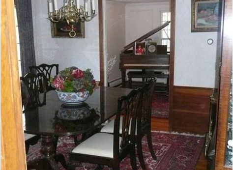 The large window was an old salvaged piece from a farmhouse in Arlington. I painted it added a wood ledge with brackets and hung over the sideboard.