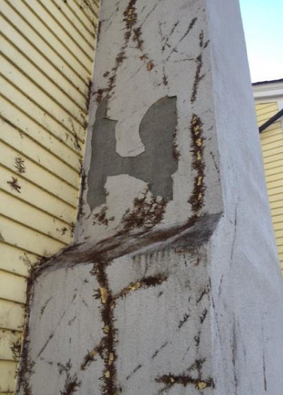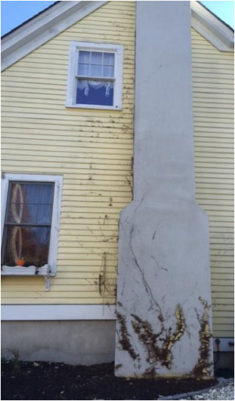 The chimney was repaired and painted 2 coats in a gray color DryLock which seals and protects – http://www.homedepot.com/p/DRYLOK-1-gal-Gray-Masonry-Waterproofer-27613/100165469.