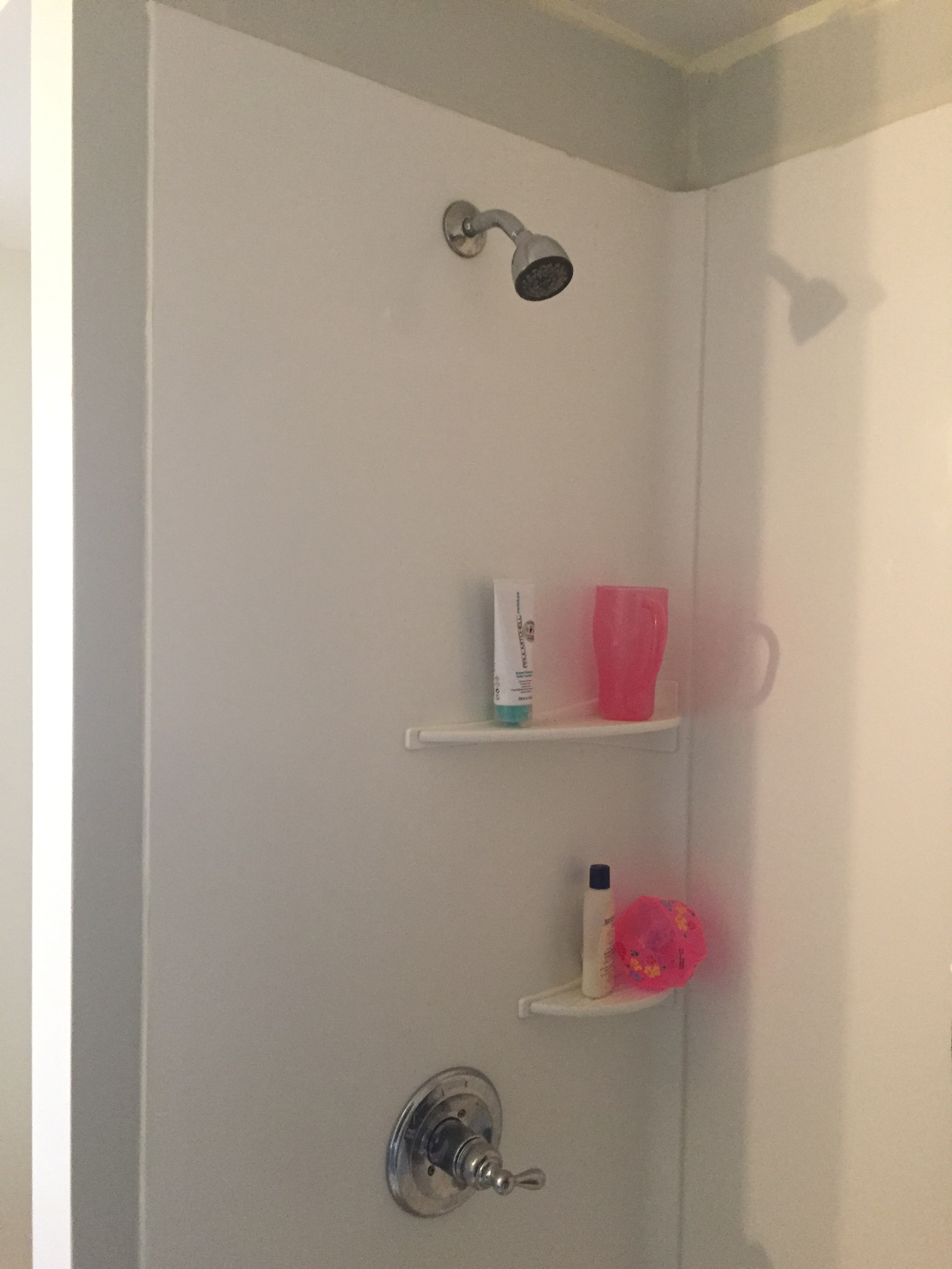 We had the tub sprayed a fresh white and installed all new fixtures – since the existing shower was Delta we bought a Delta replacement as to not have to replace the whole valve system in the wall – I like the style of the Silverton Delta shower head and faucet. http://www.homedepot.com/p/Delta-Silverton-Single-Handle-1-Spray-Tub-and-Shower-Faucet-in-Chrome-144713/203263680