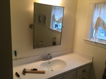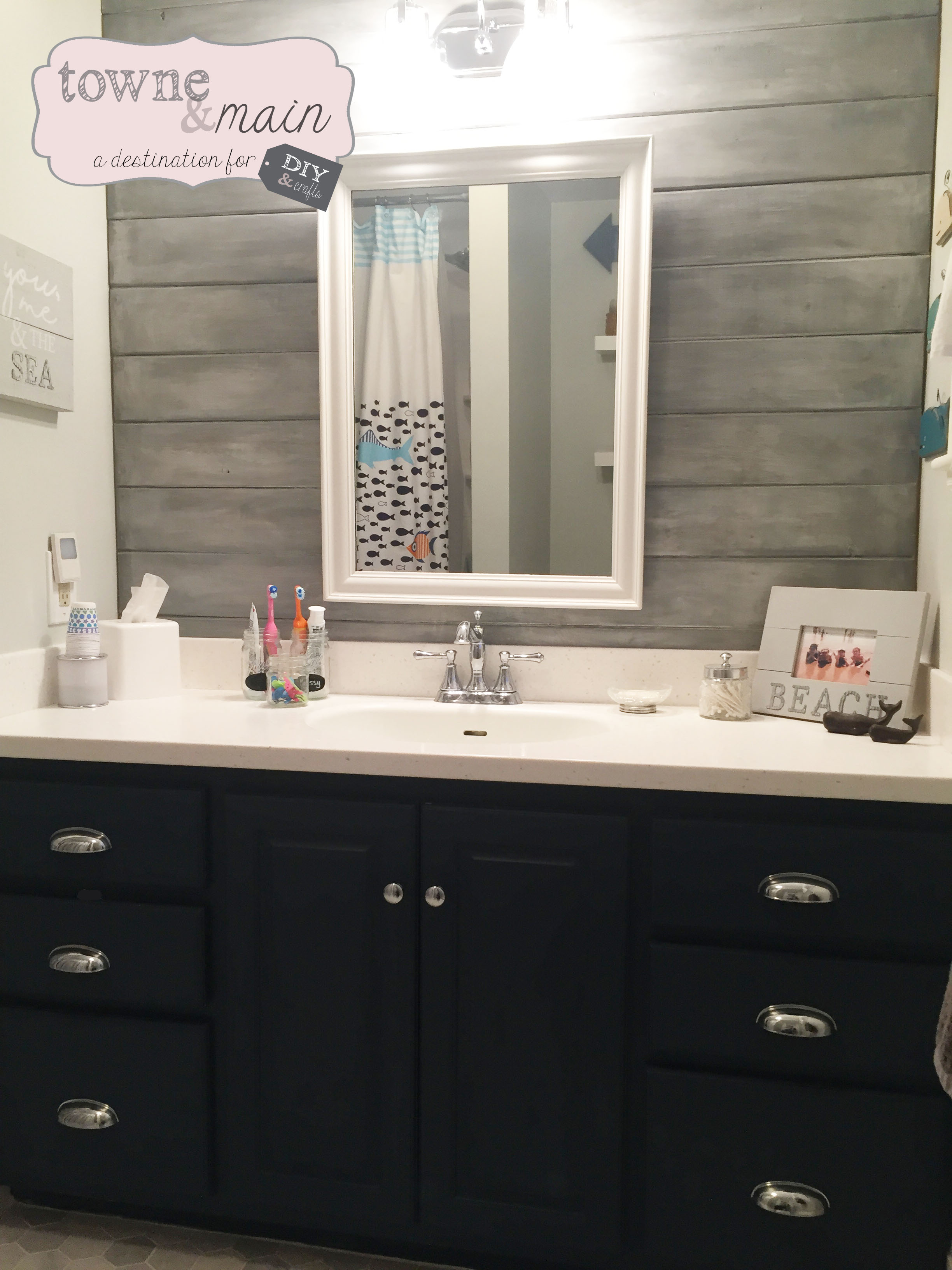 Not in love with the mirror and still looking for the perfect one for the space, and I’m also working on making wood bracket shelves to match the shiplap for over the toilet area, will post updated images when complete.