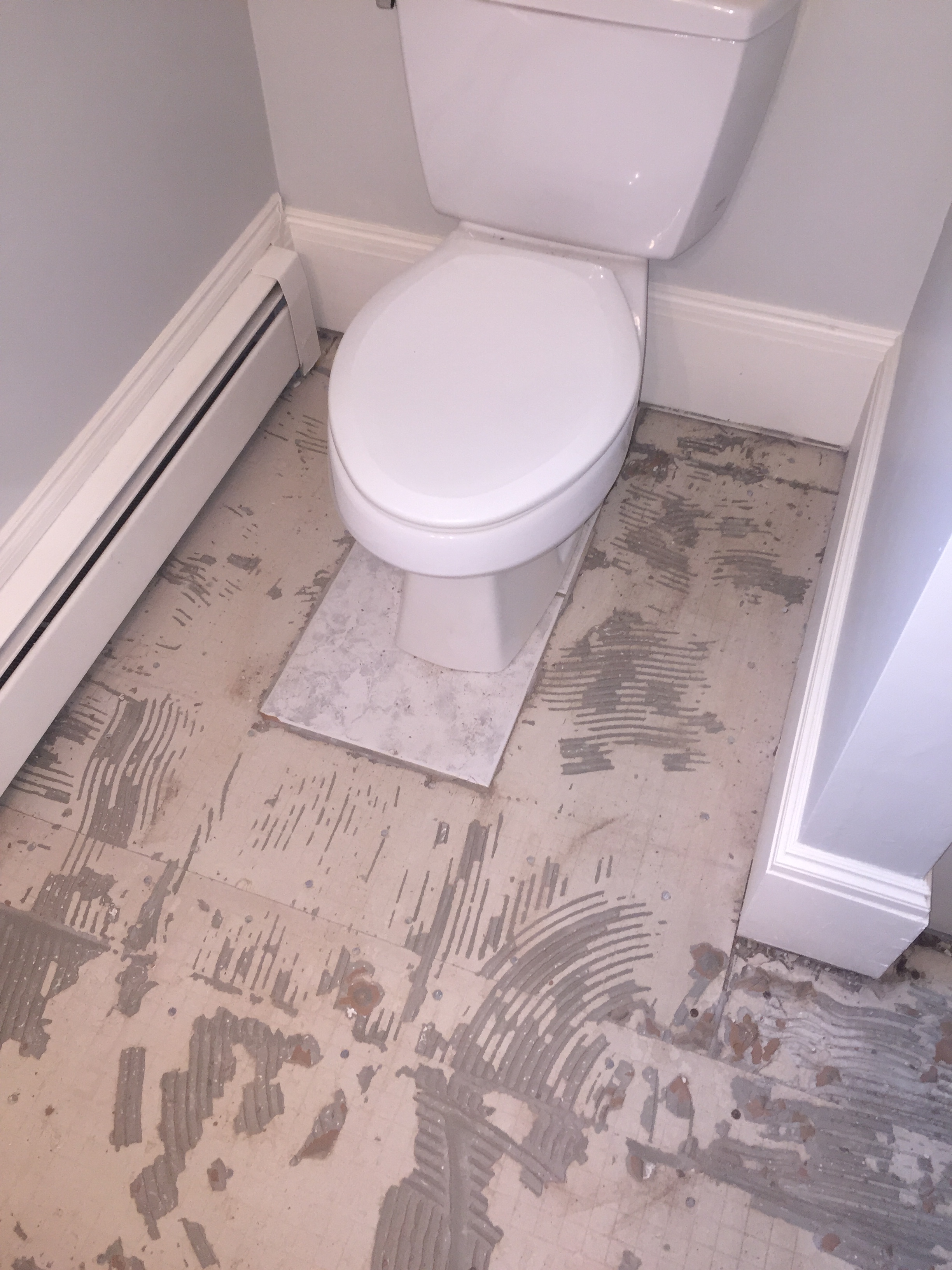 We removed all the floor tiles and the shower surround which was 4 slabs of solid stone!