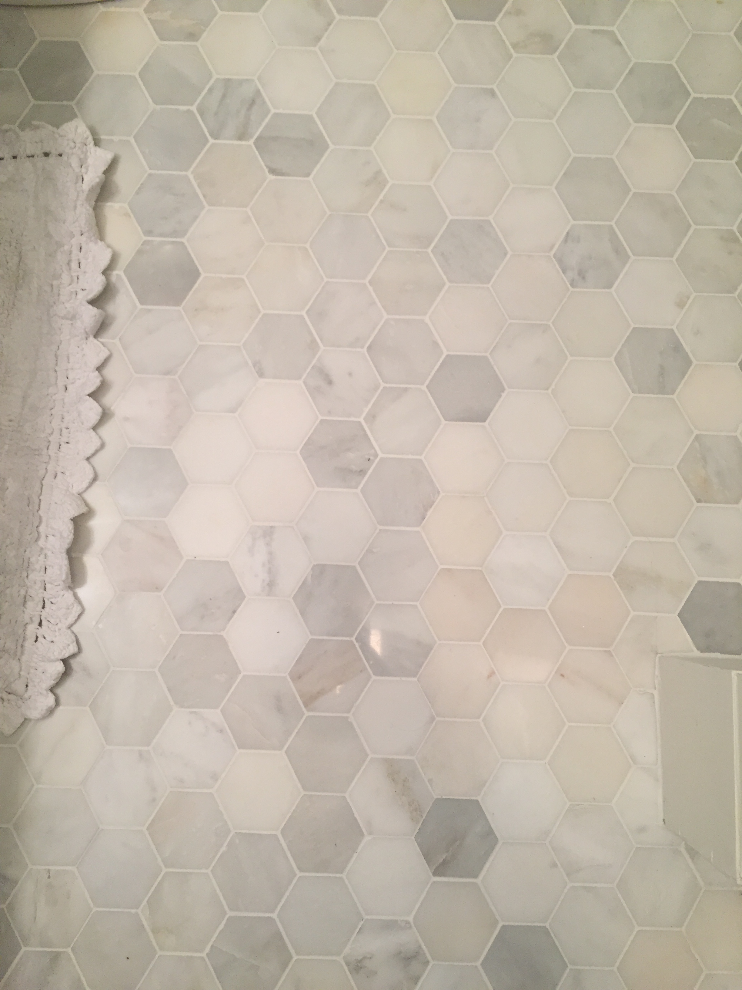 So for the floor tile we did buy from home depot, despite what people say about big box stores I really love the look of this tile – its a Grecian white marble hexagon and its a 12×12 sheet size