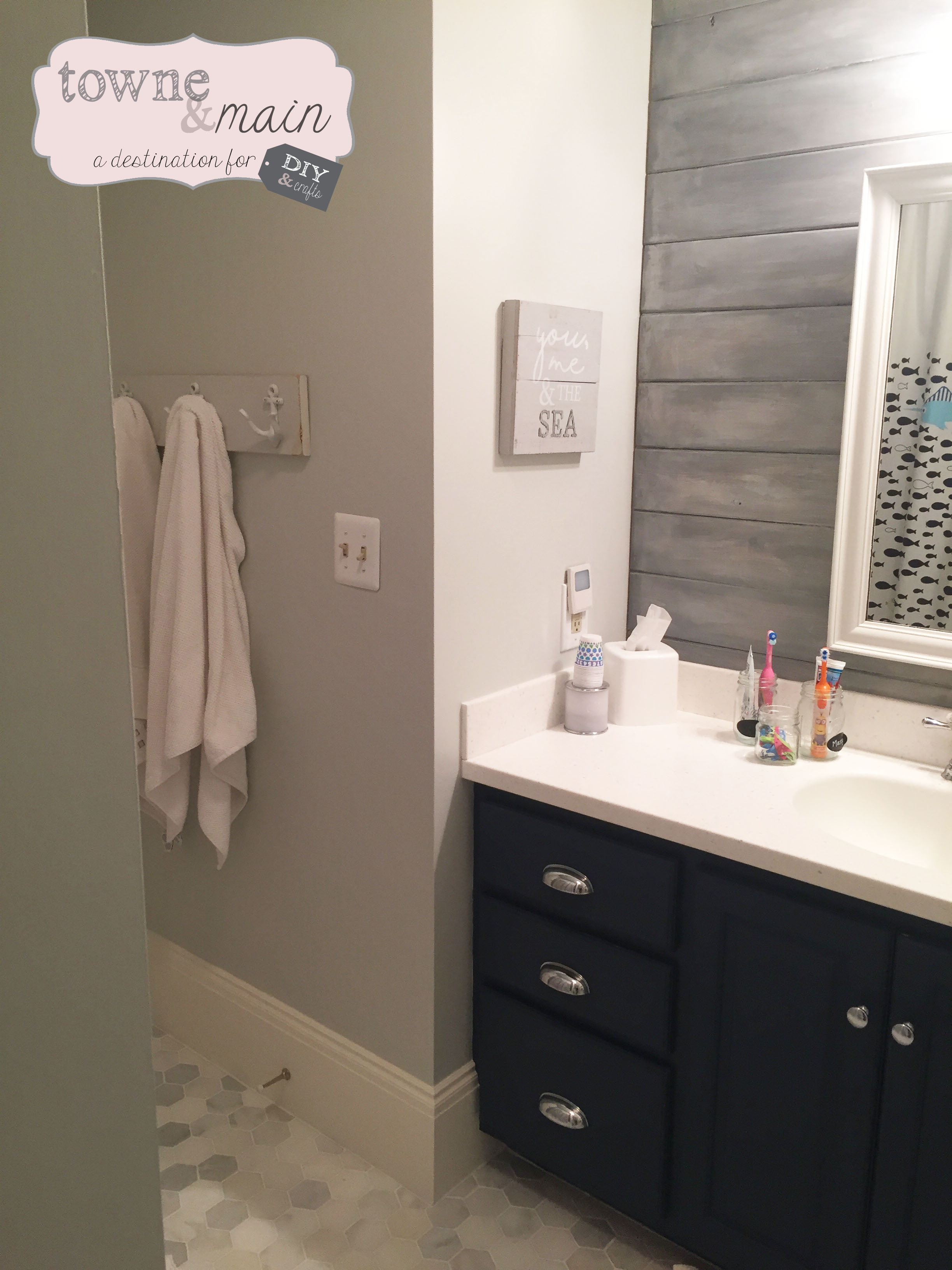 So my husband and I tackled the kids bathroom remodel – it was a process that took about 4 weekends worth of work.